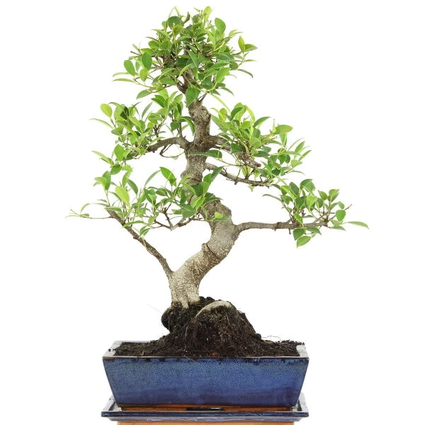 12 Jahre alte Banyan-Feige (Ficus) in einer Bonsaischale. Dieser Bonsai ist ca. 53cm hoch und wird mit einem Untersetzer geliefert.