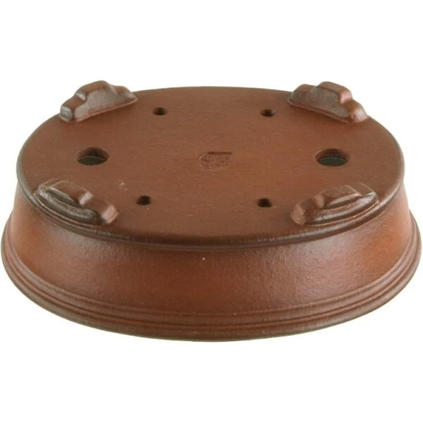 Bonsaischale (Unglasiert, Antik Braun, Oval), Masteredition, in den Abmessungen: 11.5cm Länge, 9cm Breite, 3.3cm Höhe.