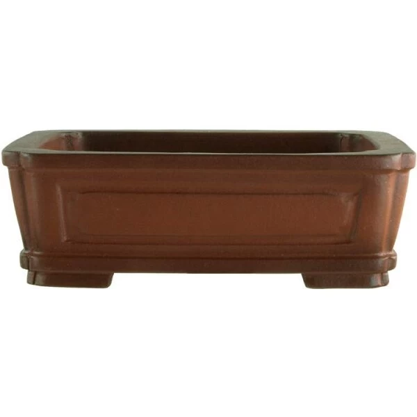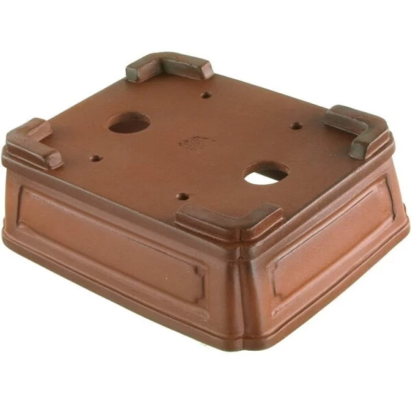 Bonsaischale (Unglasiert, Antik Braun, Rechteckig), Masteredition, in den Abmessungen: 11.5cm Länge, 9cm Breite, 3.7cm Höhe.