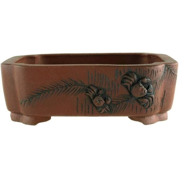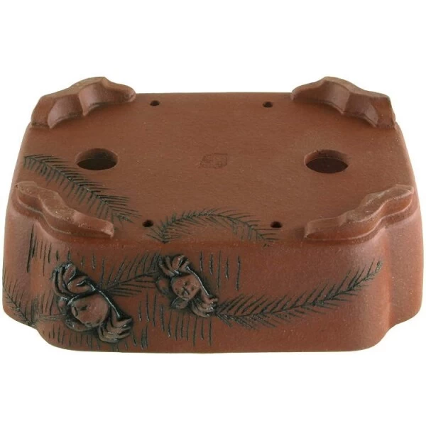 Bonsaischale (Unglasiert, Antik Braun, Rechteckig), Masteredition, in den Abmessungen: 12.5cm Länge, 10cm Breite, 4.3cm Höhe.
