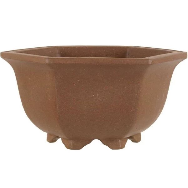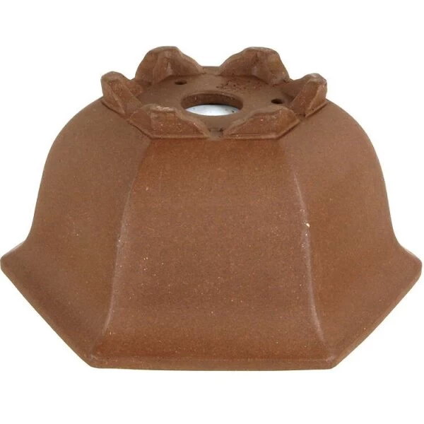 Bonsaischale 14×12.5×6.8cm Handarbeit Braun Sechseckig Unglasiert