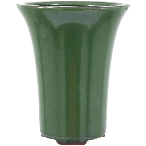Bonsaischale (glasiert, grün, oval) in den Abmessungen: 15.5cm Länge, 15.5cm Breite, 18.5cm Höhe. Gute Standardqualität aus der Töpferstadt Yixing.