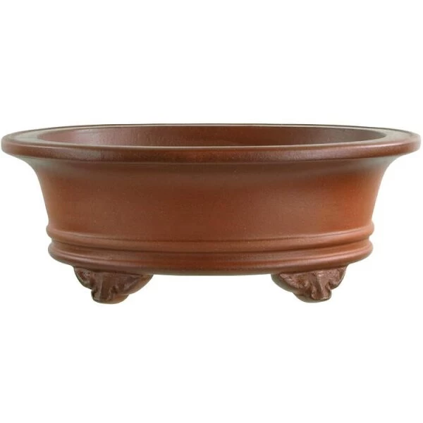 Bonsaischale (Unglasiert, Antik Braun, Oval), Masteredition, in den Abmessungen: 17.5cm Länge, 14cm Breite, 6.5cm Höhe.