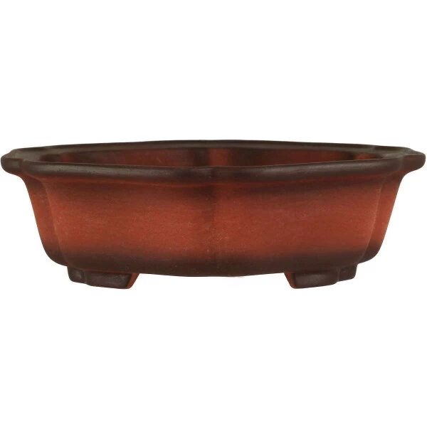 Bonsaischale (unglasiert, dunkelbraun, achteckig) in den Abmessungen: 18.5cm Länge, 18.5cm Breite, 5.5cm Höhe. Sehr gute Qualität aus der berühmten Töpferstadt Yixing.