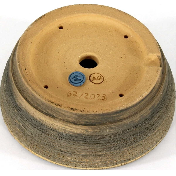 Herstellungsverfahren: Der Grundkörper dieser Bonsaischale wurde mit einer Drehscheibe hergestellt. Der lederharte Rohling wird akurat per Hand geglättet und beim Trocknen ständig ausgerichtet und nachkorrigiert. Nach dem Trocknen wurde die Schale bei ca. 1220°C (Elektroofen) gebrannt. Durch die hohe Temperatur im Ofen ist die Schale dichtgebrannt und frostfest.