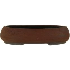 Bonsaischale (Unglasiert, Rotbraun, Oval), handgemacht, in den Abmessungen: 26.5cm Länge, 21cm Breite, 6cm Höhe.
