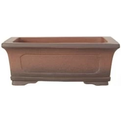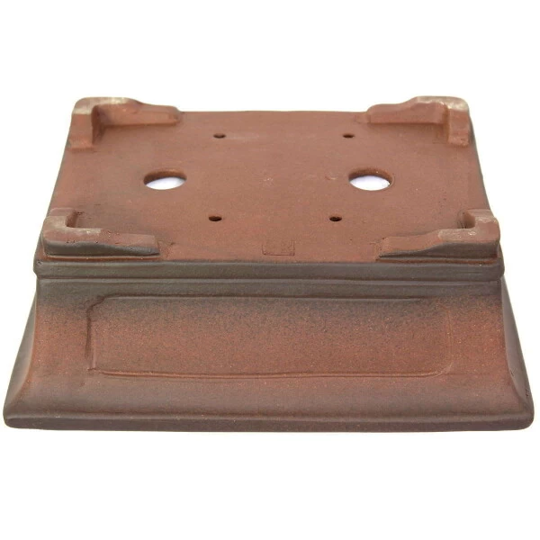 Bonsaischale (Unglasiert, Antik-Braun, Rechteckig), handgemacht, in den Abmessungen: 26cm Länge, 20.5cm Breite, 9.5cm Höhe.