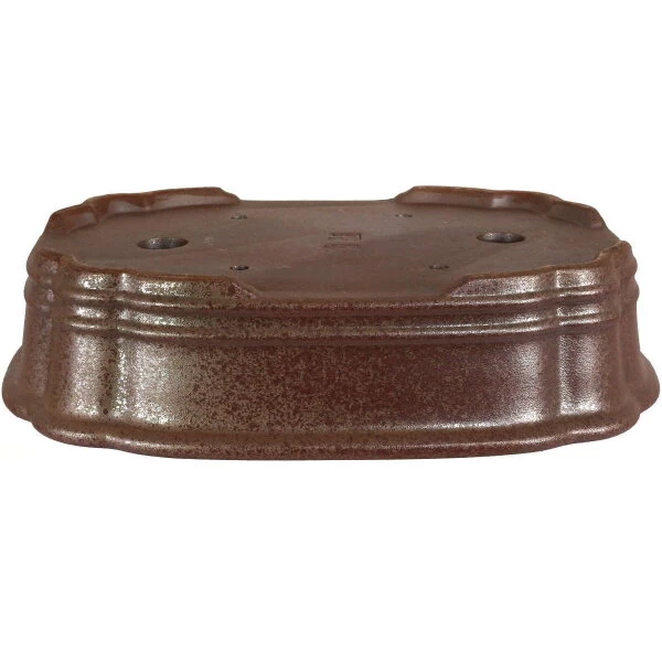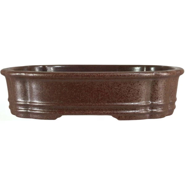 Bonsaischale (unglasiert, dunkelbraun, rechteckig) in den Abmessungen: 26cm Länge, 20cm Breite, 6.5cm Höhe. Sehr gute Qualität aus der berühmten Töpferstadt Yixing.