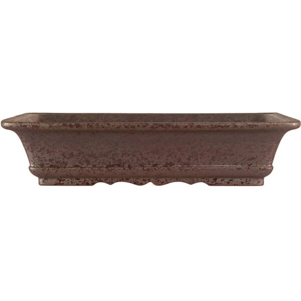 Bonsaischale (unglasiert, dunkelbraun, rechteckig) in den Abmessungen: 28cm Länge, 20.5cm Breite, 6.5cm Höhe. Sehr gute Qualität aus der berühmten Töpferstadt Yixing.