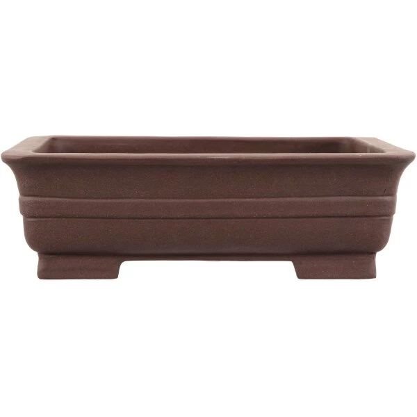 Bonsaischale (unglasiert, braun, rechteckig), handgemacht, in den Abmessungen: 30.5cm Länge, 24cm Breite, 9cm Höhe.