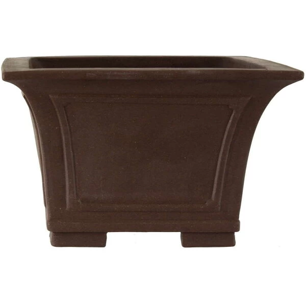 Bonsaischale (Unglasiert, Dunkelbraun, Quadratisch), handgemacht, in den Abmessungen: 31cm Länge, 31cm Breite, 19.5cm Höhe.