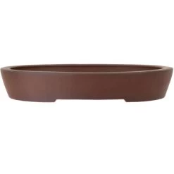 Bonsaischale (unglasiert, antik-braun, oval), handgemacht, in den Abmessungen: 33cm Länge, 25.5cm Breite, 5.5cm Höhe.