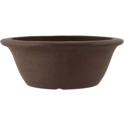 Bonsaischale (Unglasiert, Dunkelbraun, Rund), handgemacht, in den Abmessungen: 34.5cm Länge, 34.5cm Breite, 12.5cm Höhe.