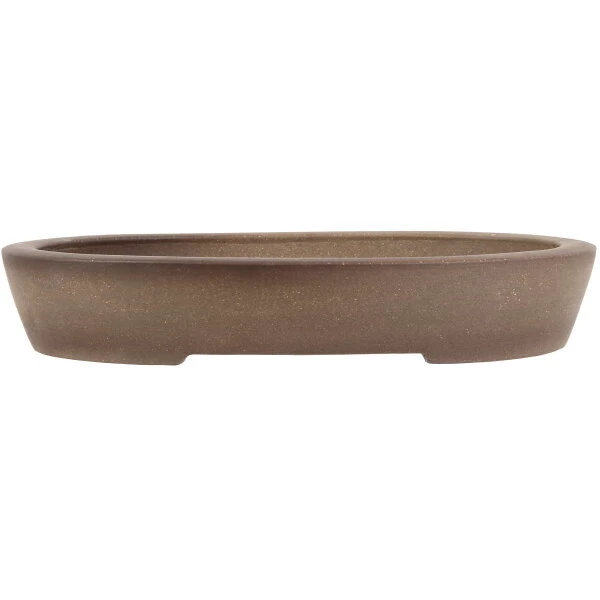 Bonsaischale (unglasiert, antik-grau, oval), handgemacht, in den Abmessungen: 34cm Länge, 26.5cm Breite, 5.5cm Höhe.