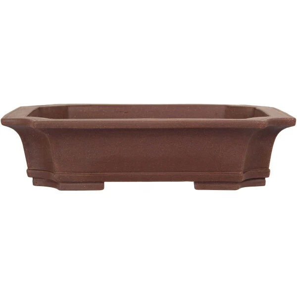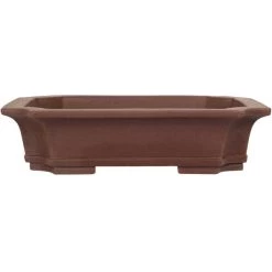 Bonsaischale (unglasiert, braun, rechteckig), handgemacht, in den Abmessungen: 34cm Länge, 27.5cm Breite, 8.5cm Höhe.