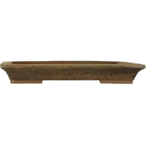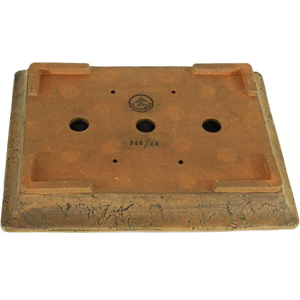Bonsaischale (Unglasiert, Braun, Rechteckig), handgemacht, in den Abmessungen: 36.5cm Länge, 28cm Breite, 5cm Höhe.