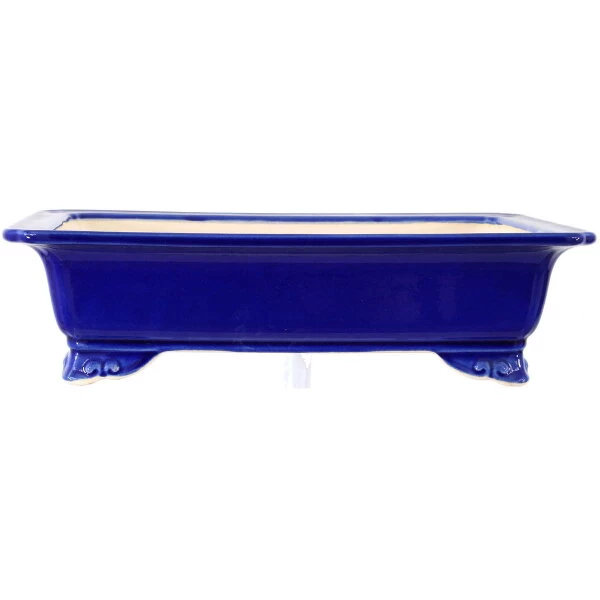 Bonsaischale (Glasiert, Blau-Dunkel, Rechteckig), handgemacht, in den Abmessungen: 39cm Länge, 26.5cm Breite, 10.5cm Höhe.