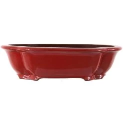 Bonsaischale (Glasiert, Weinrot, Lotusförmig), handgemacht, in den Abmessungen: 40.5cm Länge, 31cm Breite, 11cm Höhe.