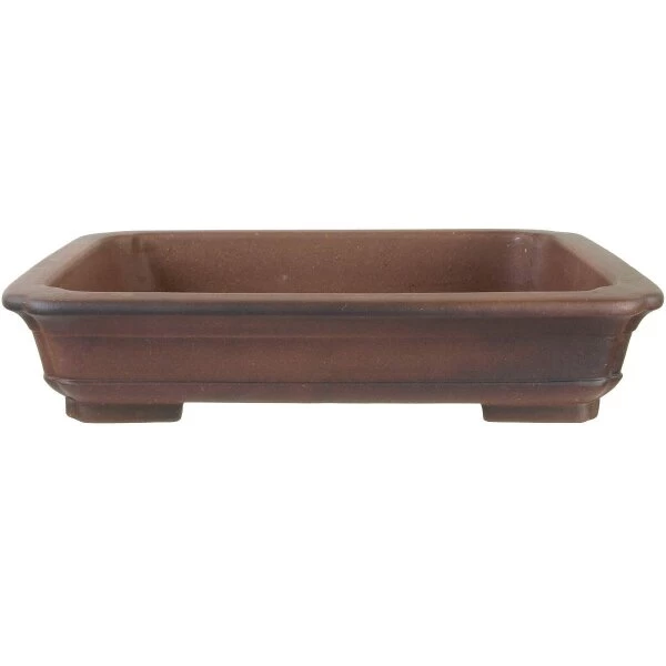 Bonsaischale (unglasiert, antik-braun, rechteckig), handgemacht, in den Abmessungen: 40.5cm Länge, 32.5cm Breite, 8.5cm Höhe.