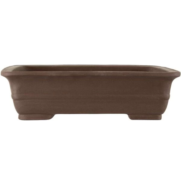 Bonsaischale (Unglasiert, Dunkelbraun, Rechteckig), handgemacht, in den Abmessungen: 42.5cm Länge, 33cm Breite, 11.5cm Höhe.
