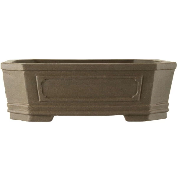 Bonsaischale (Unglasiert, Grau, Rechteckig), handgemacht, in den Abmessungen: 42.5cm Länge, 34cm Breite, 13.5cm Höhe.