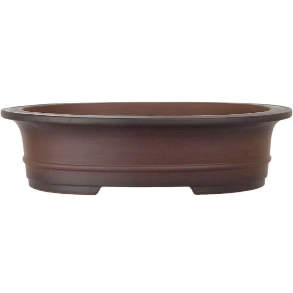 Bonsaischale (unglasiert, antik-braun, oval), handgemacht, in den Abmessungen: 45.5cm Länge, 36.5cm Breite, 12cm Höhe.