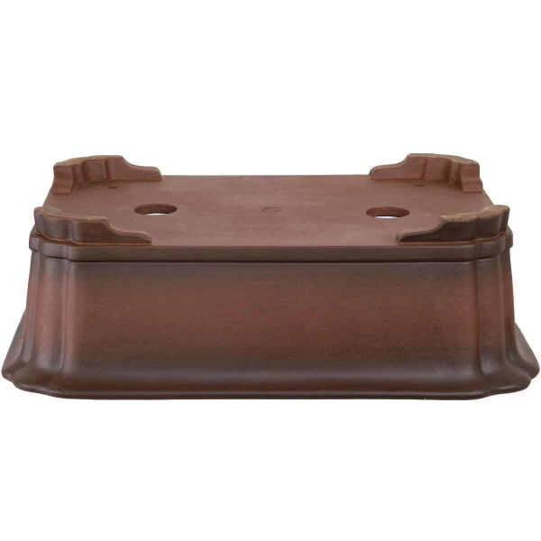 Bonsaischale (unglasiert, antik-braun, rechteckig), handgemacht, in den Abmessungen: 46cm Länge, 35.5cm Breite, 14cm Höhe.