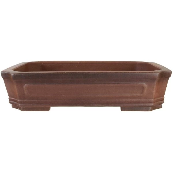 Bonsaischale (unglasiert, antik-braun, rechteckig), handgemacht, in den Abmessungen: 48cm Länge, 35cm Breite, 11.5cm Höhe.