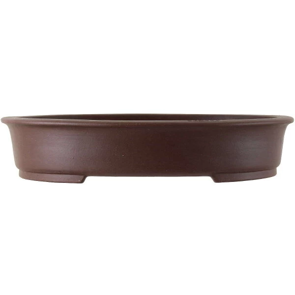 Bonsaischale (Unglasiert, Antik-Braun, Oval), handgemacht, in den Abmessungen: 48cm Länge, 38.5cm Breite, 10cm Höhe.