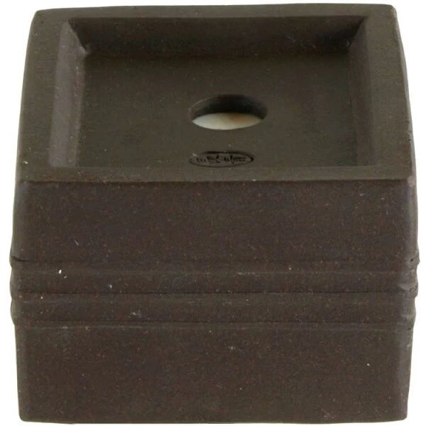 Bonsaischale (Unglasiert, Dunkelbraun, Quadratisch) in den Abmessungen: 5.5cm Länge, 5.5cm Breite, 4cm Höhe.