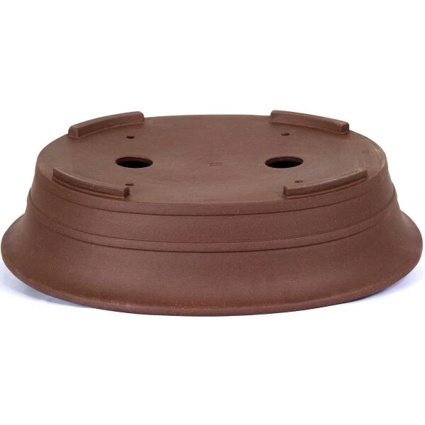 Bonsaischale (unglasiert, braun, oval), handgemacht, in den Abmessungen: 50cm Länge, 42cm Breite, 12cm Höhe.