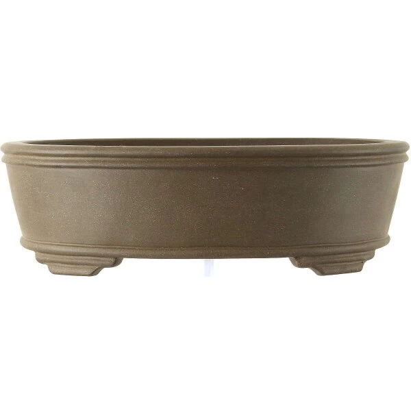 Bonsaischale (Unglasiert, Grau, Oval), handgemacht, in den Abmessungen: 51cm Länge, 41cm Breite, 15cm Höhe.