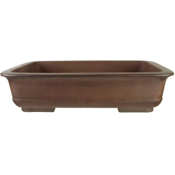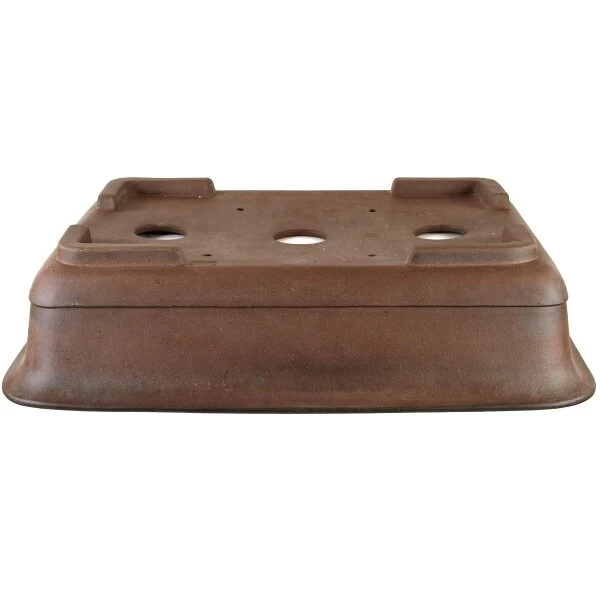 Bonsaischale (unglasiert, antik-braun, rechteckig), handgemacht, in den Abmessungen: 56.5cm Länge, 42cm Breite, 14cm Höhe.