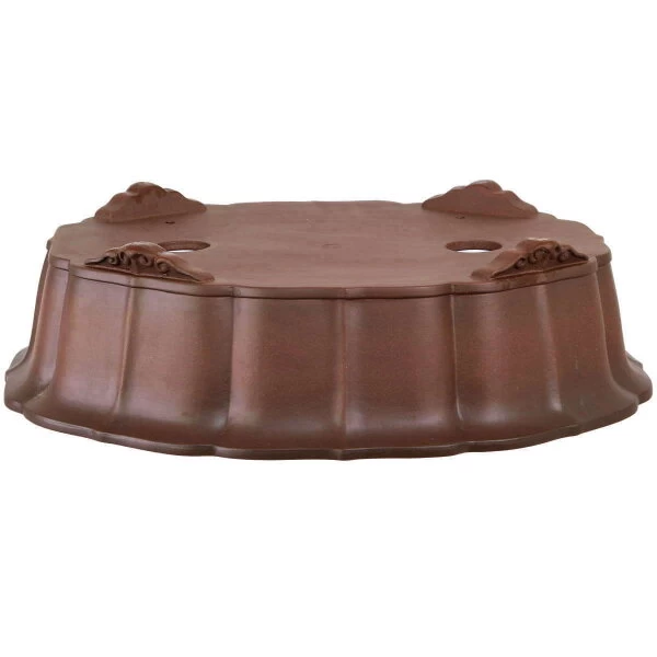 Bonsaischale (unglasiert, antik-braun, oval), handgemacht, in den Abmessungen: 56cm Länge, 45.5cm Breite, 15cm Höhe.