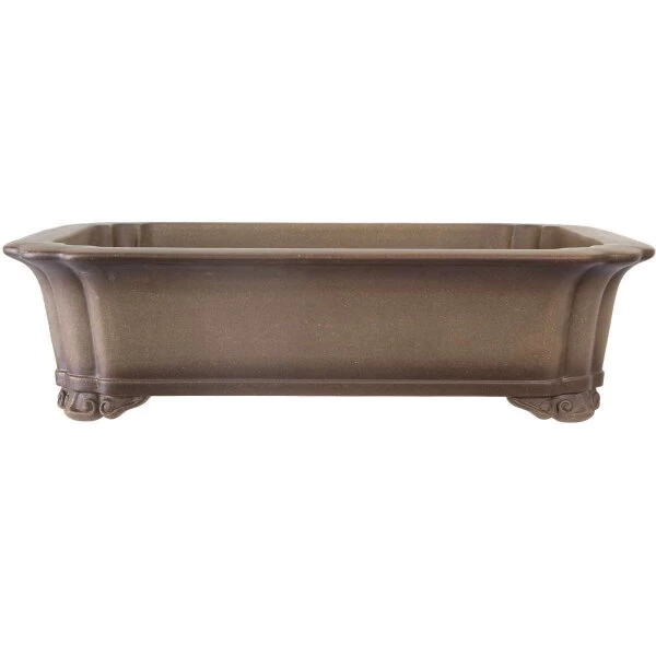 Bonsaischale (unglasiert, antik-grau, rechteckig), handgemacht, in den Abmessungen: 57cm Länge, 46cm Breite, 15cm Höhe.