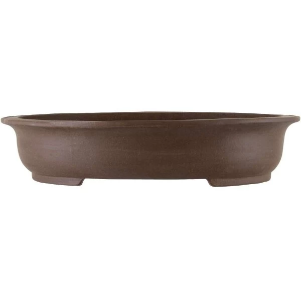 Bonsaischale (Unglasiert, Dunkelbraun, Oval), handgemacht, in den Abmessungen: 74.5cm Länge, 58cm Breite, 16cm Höhe.