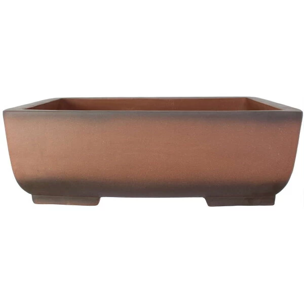 Bonsaischale (Unglasiert, Antik-Hellbraun, Rechteckig), handgemacht, in den Abmessungen: 79cm Länge, 59cm Breite, 26cm Höhe.