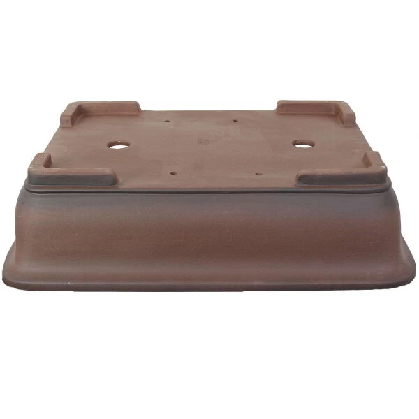 Bonsaischale (Unglasiert, Antik-Braun, Rechteckig), handgemacht, in den Abmessungen: 81cm Länge, 61.5cm Breite, 22.5cm Höhe.
