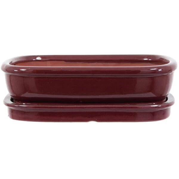 Bonsaischale Mit Untersetzer 25.5×19.5×6.5cm Weinrot Rechteckig Glasiert