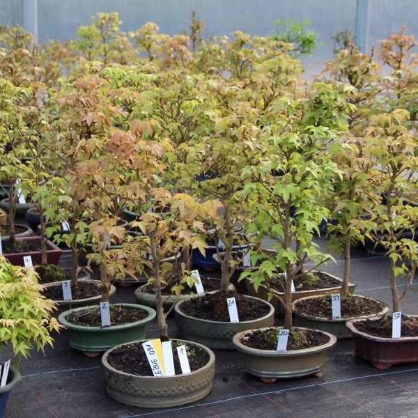 9 Jahre alter Dreispitzahorn in einer Bonsaischale. Dieser Bonsai ist ca. 49cm hoch und wurde aus einer japanischen Bonsaigärtnerei importiert.