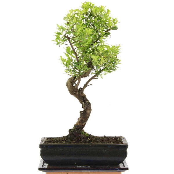 11 Jahre alte Kirschmyrte in einer Bonsaischale. Dieser Bonsai ist ca. 43cm hoch und wird mit einem Untersetzer geliefert.