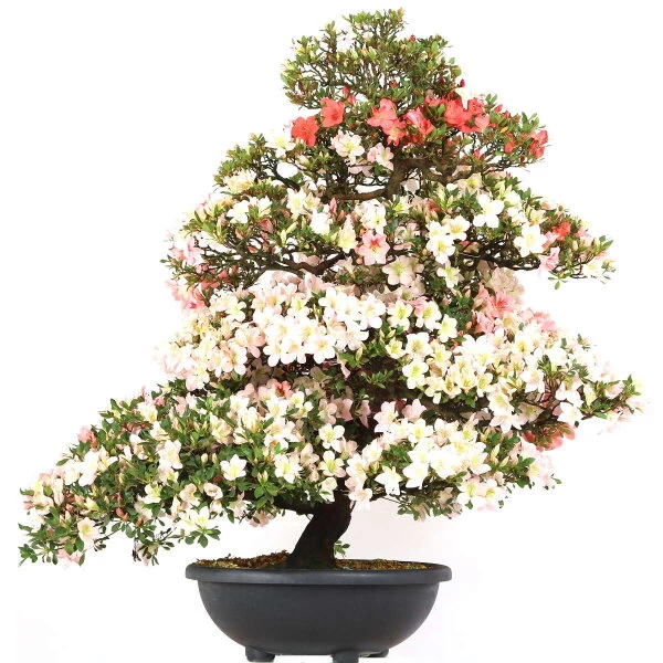 Besonders auffällig ist im April-Juni die üppige Blüte mit leuchtend Einzelblüten. Die Satsuki Azalee ist gut für die Gestaltung eines dekorativen Blütenbonsai geeignet. Oft haben Azaleen Bonsai kräftige Stämme.