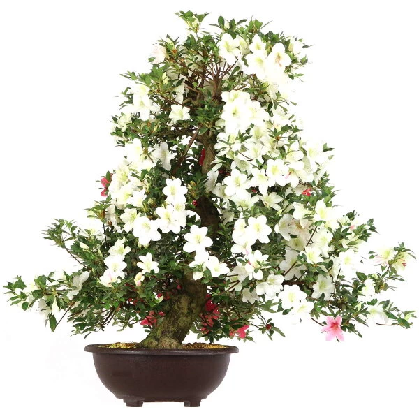 Besonders auffällig ist im April-Juni die üppige Blüte mit leuchtend Einzelblüten. Die Satsuki Azalee ist gut für die Gestaltung eines dekorativen Blütenbonsai geeignet. Oft haben Azaleen Bonsai kräftige Stämme.