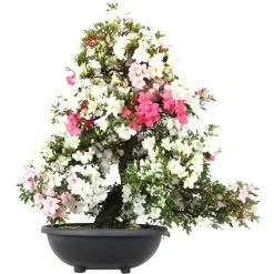 Besonders auffällig ist im April-Juni die üppige Blüte mit leuchtend Einzelblüten. Die Satsuki Azalee ist gut für die Gestaltung eines dekorativen Blütenbonsai geeignet. Oft haben Azaleen Bonsai kräftige Stämme.