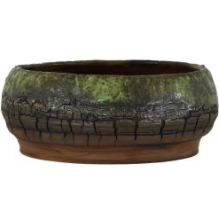 Bonsaischale 15.5×15.5x6cm Dunkelgrün Rund Glasiert