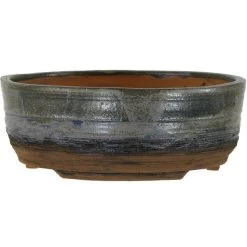 Bonsaischale 22.5×18.5x7cm Grau Oval Glasiert