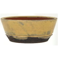 Bonsaischale 18×18.5x7cm Gelbbraun Rund Glasiert