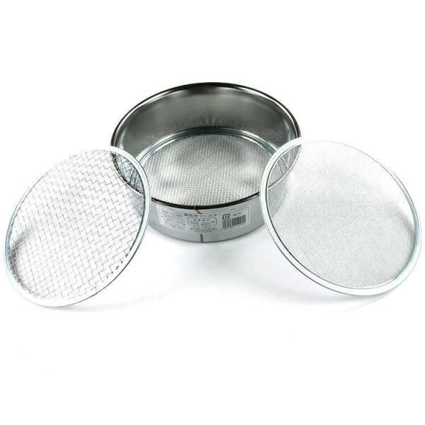 Siebset aus Edelstahl mit 3 verschiedenen Einsätzen. Zum Sieben der verschiedenen Bonsai-Substrate (z.B. Akadama, Kiryu, Baumschulerde) sehr gut geeignet.