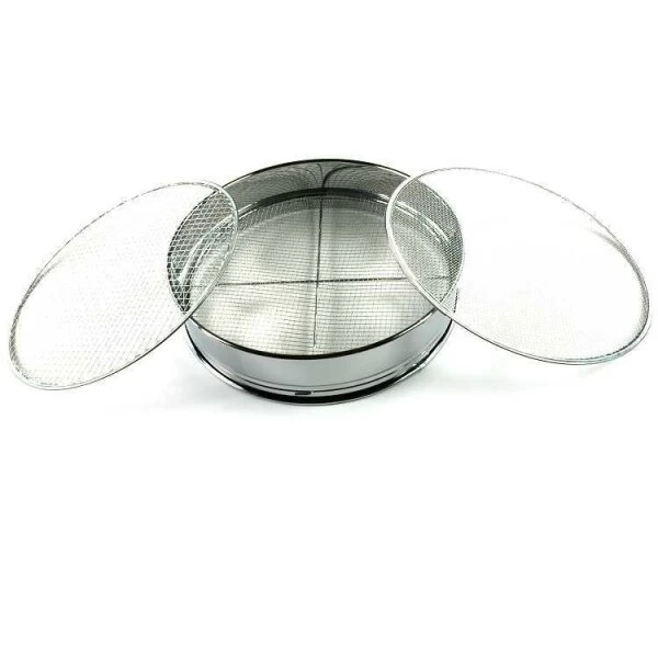 Siebset aus Edelstahl mit 3 verschiedenen Einsätzen. Zum Sieben der verschiedenen Bonsai-Substrate (z.B. Akadama, Kiryu, Baumschulerde) sehr gut geeignet.